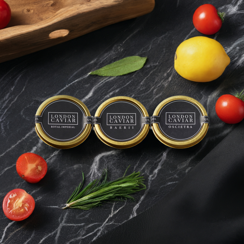 Immerse yourself in the world of caviar excellence with London Caviar's exclusive trio.
